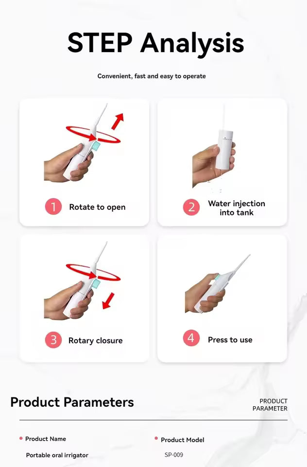 Experience superior dental hygiene with our high-pressure oral irrigator, designed to clean hard-to-reach areas effectively.